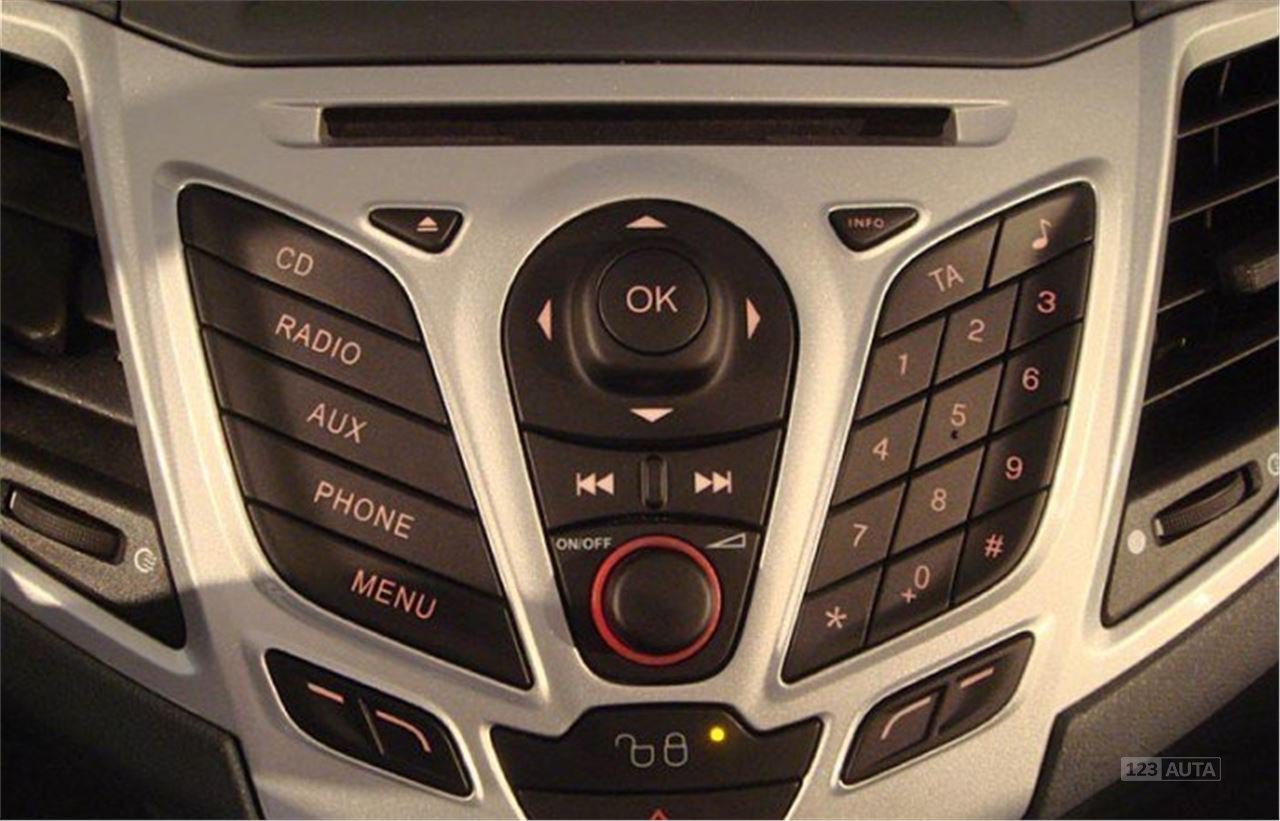 Aby lidé přesedlali z větších aut na menší, musíte opravdu vychytat prostor kabiny. Atmosféra je velice důležitá, proto přístrojové desce Fiesty dominuje mimořádný Bluetooth zvukový systém aktivovaný hlasem, který svým intuitivním rozložením připomíná mobilní telefon. Nalevo se nachází tlačítka pro CD přehrávač, rádio, vstup aux, mobil a menu. Napravo jsou zase číselná tlačítka pro mobil a pod nimi tlačítka “Shuffle” a “Scan”.
