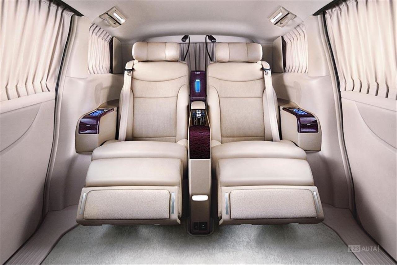 Luxusní MPV / minivan ve způsobu Toyoty Alphard, se zadním prostorem věnovaným jen dvěma obrovským letadlům sedaček ve stylu business class.