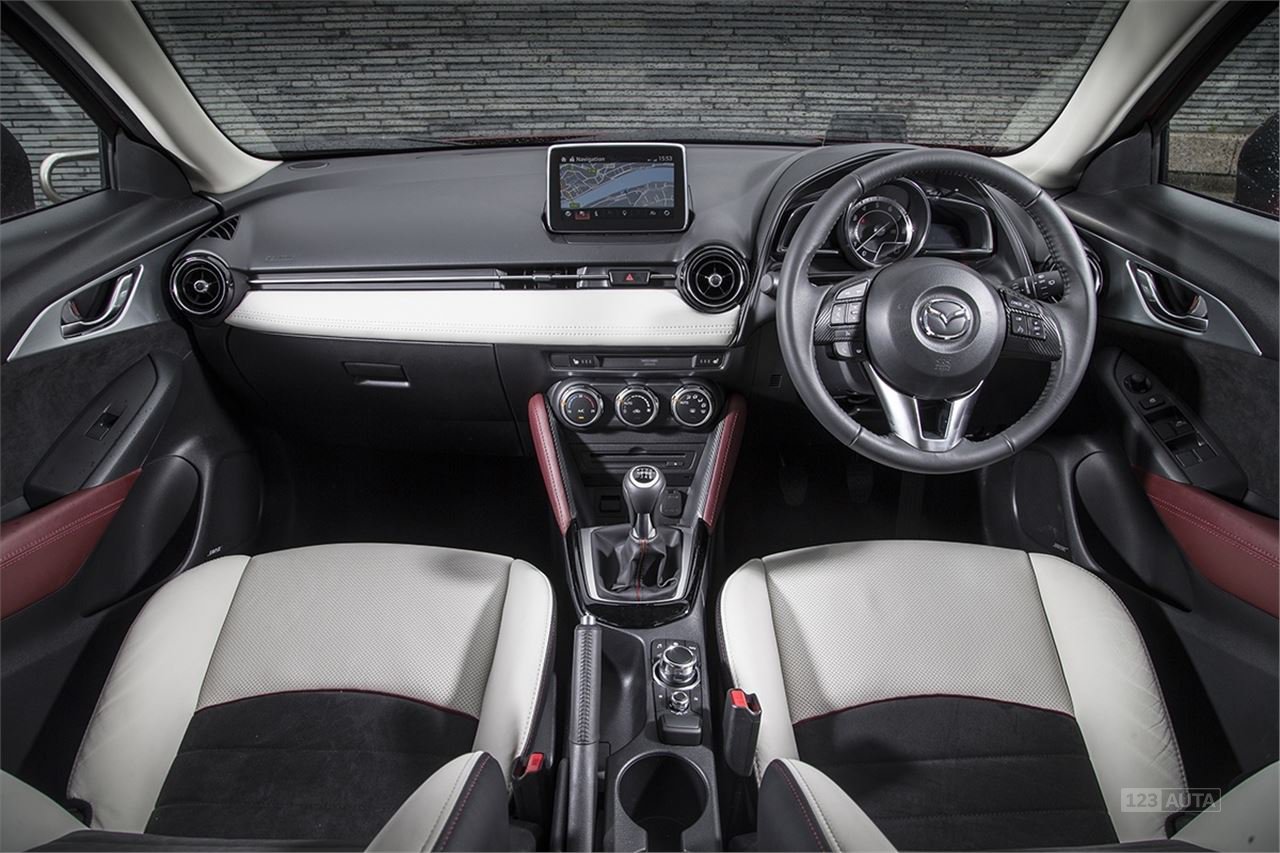Kabina modelu CX-3 je ve stylu vozu Mazda2 velmi podobná, což má smysl, protože je založeno na stejné platformě. Palubní deska je čistá a dodává se se sedmipalcovým dotykovým displejem jako standardním, čímž je zajištěn přehledný středový stoh s pouze ventilačními ovládacími prvky. Dotyková obrazovka je ovládána otočným regulátorem v blízkosti řadicí páky a je velmi intuitivní a uživatelsky přívětivá. Spojuje mobilní telefony pomocí rozhraní USB nebo Bluetooth, přináší do kabiny bezpečné…