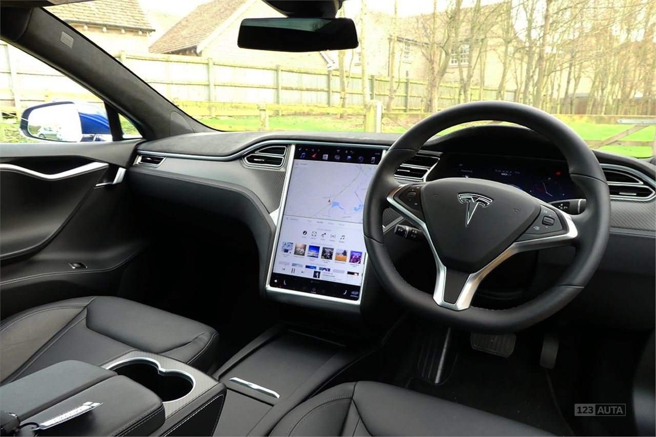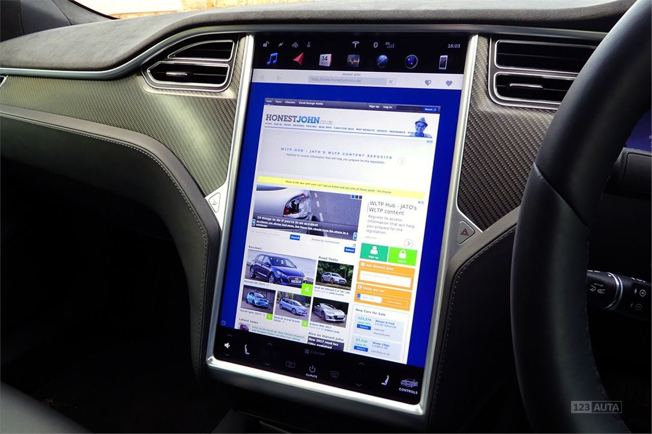 Model Tesla S je stejně špičkový, jako byste doufali uvnitř. Displej přístrojů je zcela digitální, avšak centrem pozornosti je obrovský systém dotykové obrazovky, který ovládá vše od navigace a větrání po otevírání dveří a střešního okna. Je to úhledný, snadno ovladatelný a intuitivní pro každého, kdo někdy používal iPad. Vždy je připojen všude tam, kde je mobilní datový příjem, takže mapování a streamování hudby prostřednictvím vestavěné aplikace Spotify jsou k dispozici i v případě, že…