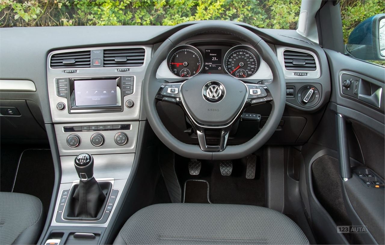 Golf vážně nemá nejzajímavější uspořádání palubní desky na trhu. Nicméně layout ovládacích prvků je velmi čistý a snadno čitelný. Všechny jsou umístěné tam, kde byste je očekávali. Zkrátka žádné překvapení, nic vzrušujícího, ale zase se hned budete cítit jako doma.